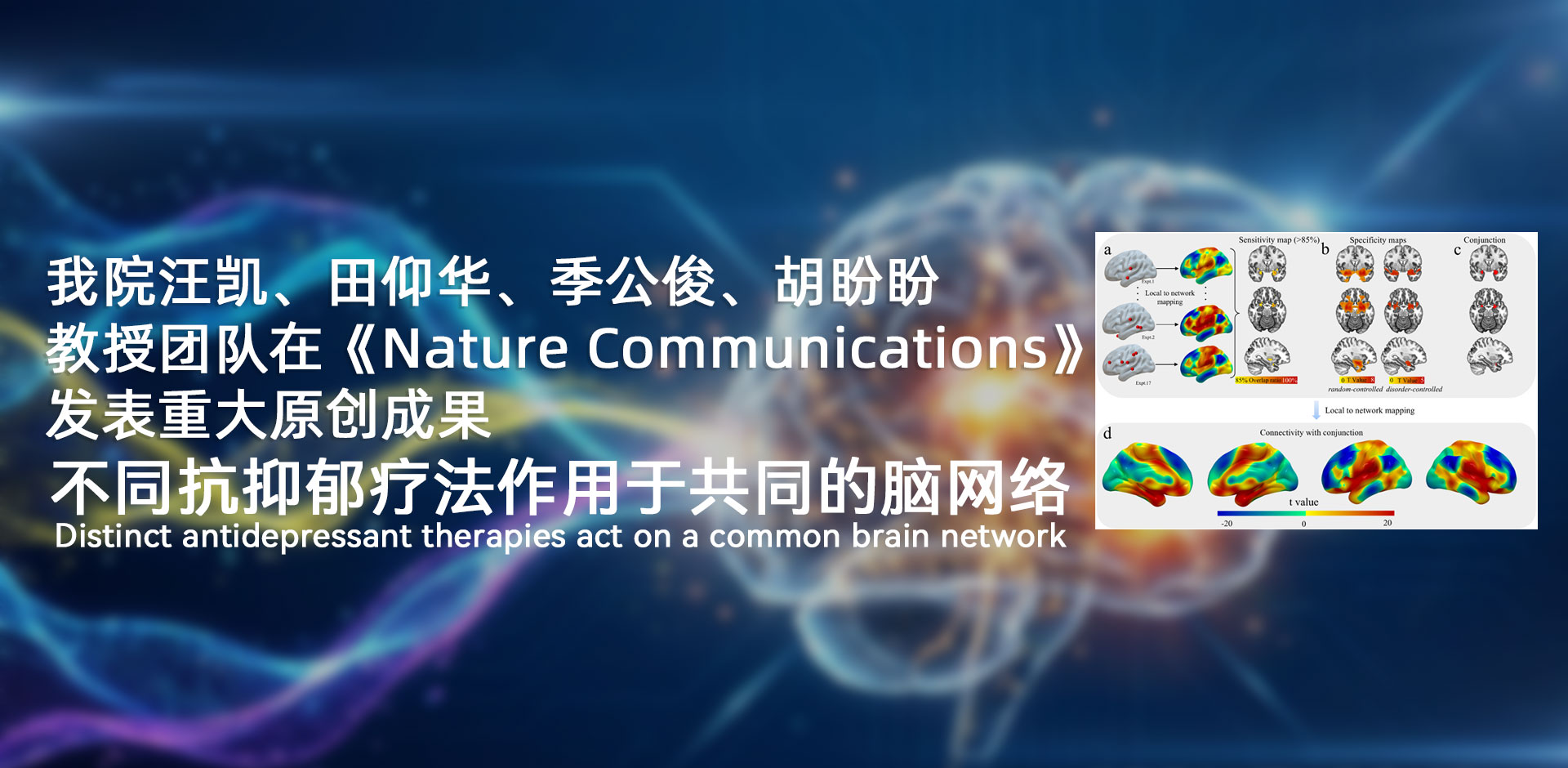 我院汪凯、田仰华、季公俊、胡盼盼教授团队在《Nature Communications》杂志发表不同抗抑郁疗法共同作用于同一大脑网络原创研究成果